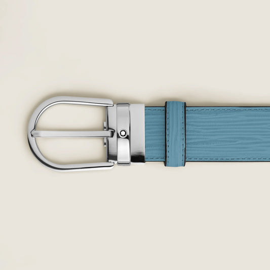 Montblanc cintura 35 mm pelle blu fumé con fibbia a ferro di cavallo 199645