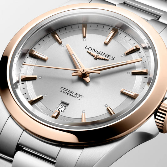 Longines orologio Conquest 30mm argento automatico oro rosa acciaio L3.320.5.72.6
