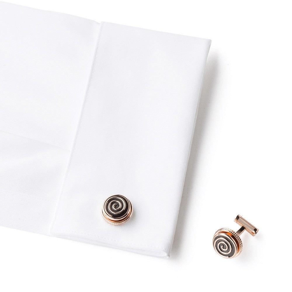 Questi gemelli si ispirano agli strumenti da scrittura Great Characters Edition, che rendono omaggio al grande musicista jazz Miles Davis. L'intramontabile forma rotonda in acciaio pregiato con finitura PVD color oro rosso e motivi a spirale bianca offre infinite possibilità per evidenziare lo stile e la personalità di chi li indossa.