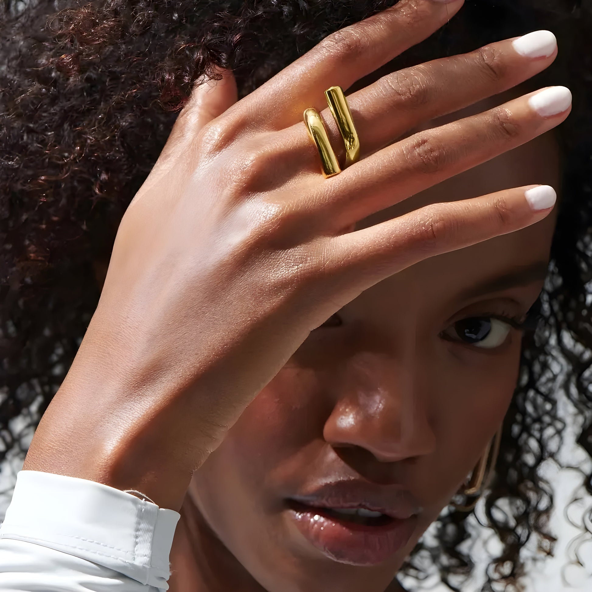 Wear with a monochrome outfit — think crisp white or soft beige — and let the ring add dimension without noise. Great paired with tailored pieces and clean lines.