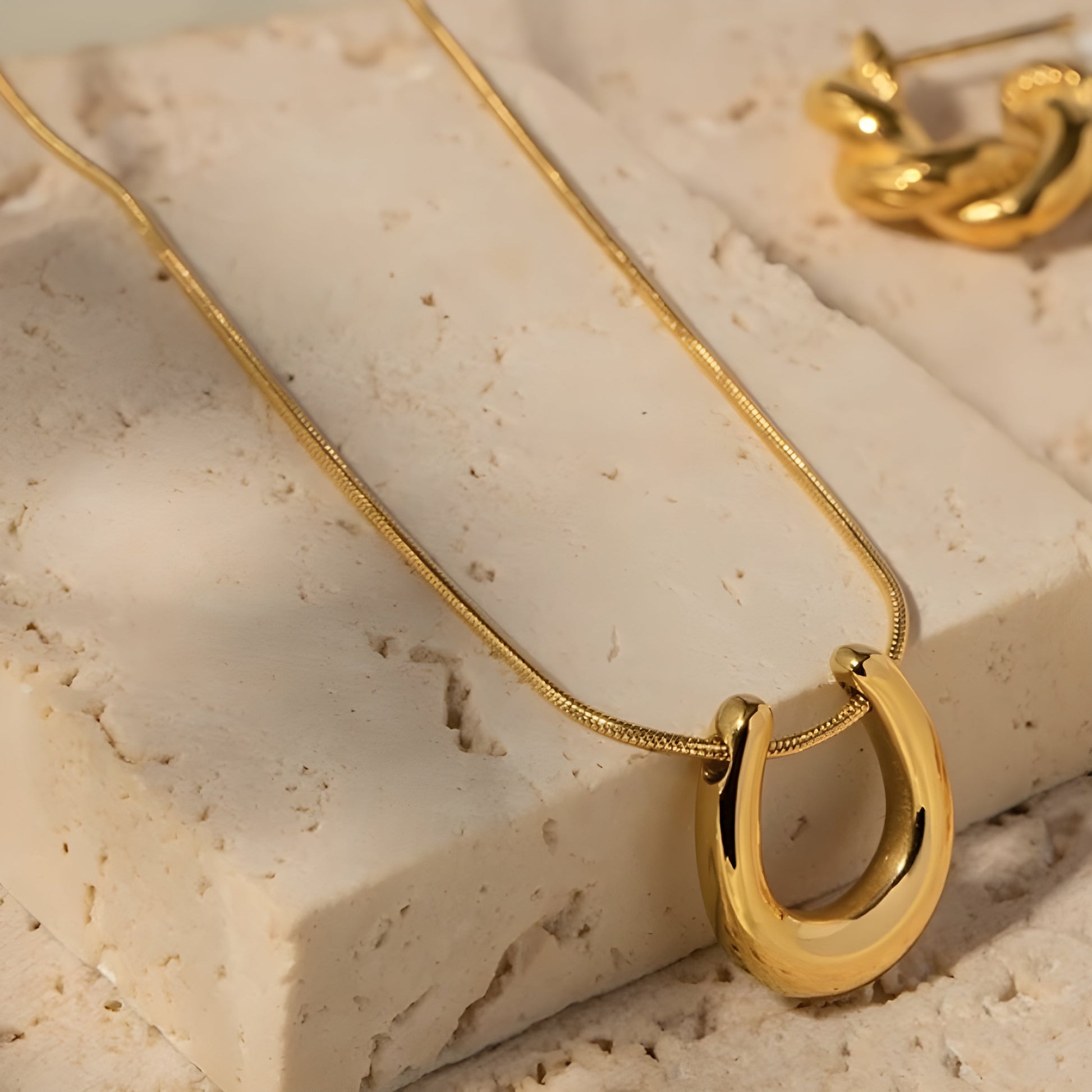 This necklace features a minimal yet stylish design, showcasing a smooth, polished horseshoe pendant. It exudes sophistication with its clean lines and gleaming finish. A perfect statement piece, it pairs effortlessly with both casual and formal attire.