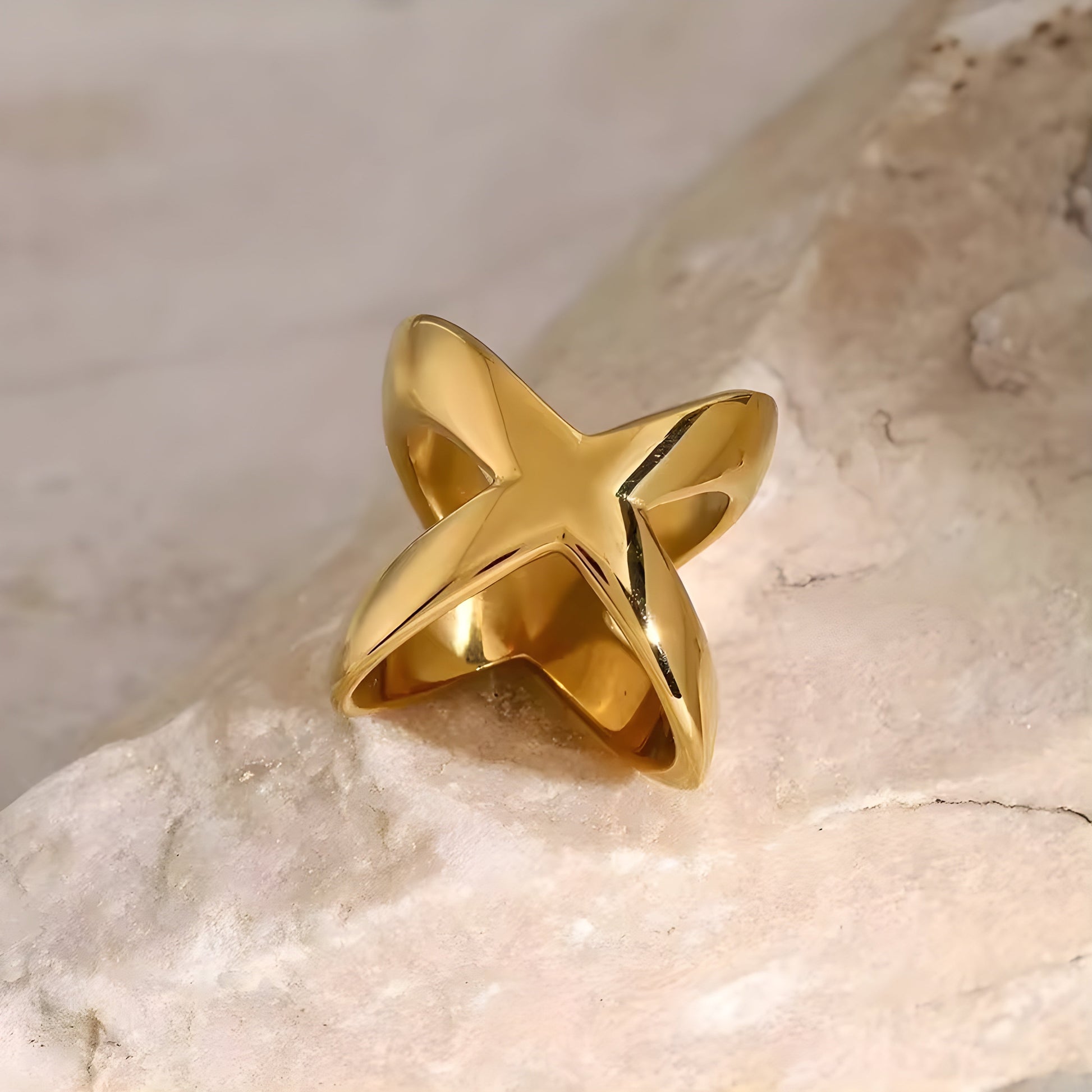 This cross-shaped ring from the BEHI Collection, with its modern and captivating design, combines simplicity and elegance, making it perfect for both everyday wear and special occasions. Its unique design adds a distinctive and eye-catching touch to your look.