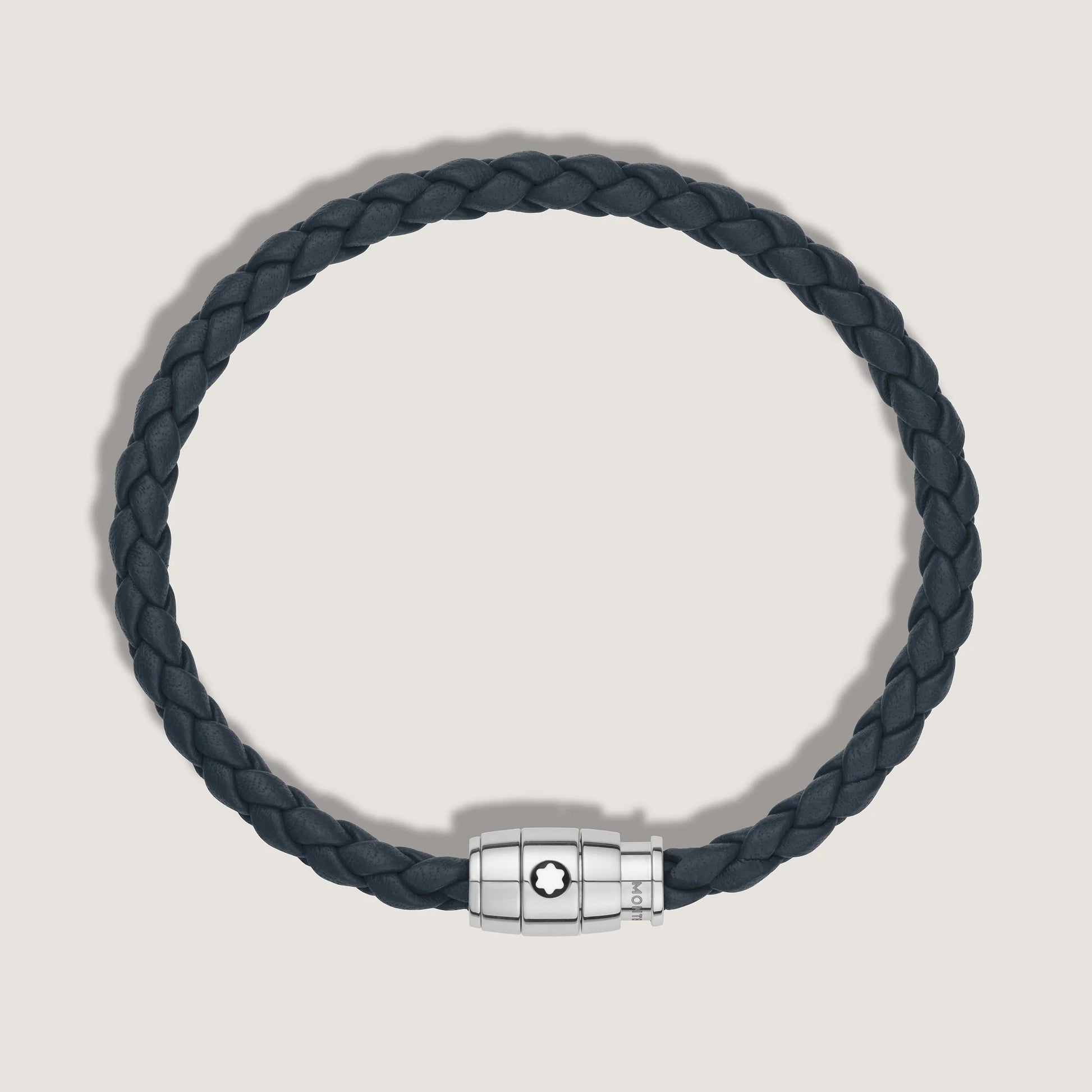 Montblanc bracciale in acciaio a 3 anelli e pelle Meisterstück Blu avio misura L 13601468
